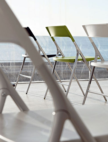 Working at home, living in the office. Spaces change and determine our relation with the objects. PLEK reinvents the classic concept of folding furniture. A nomad, sensual and polyvalent collection of folding chairs and desks. A dynamic and practical solution ideal for contract and habitat environments.