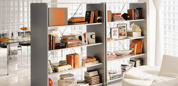 The soft and rounded lines of the bookcase combined with the functionality of the stand trolleys. Also the versatile stand bookcase fits in an environment under the sign of design and interchangeability.